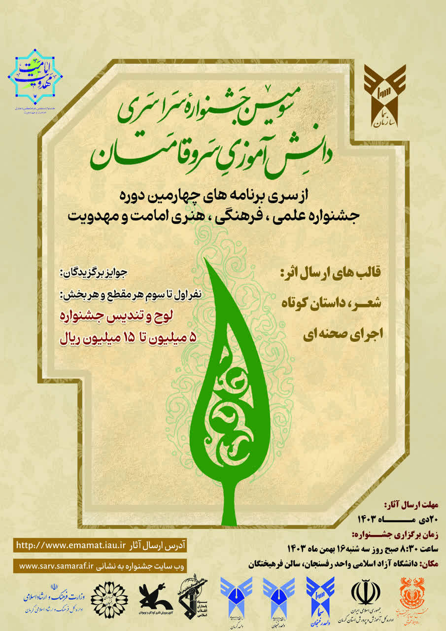اختتامیه : ساعت 8:30 سه شنبه 16 بهمن ماه 1403